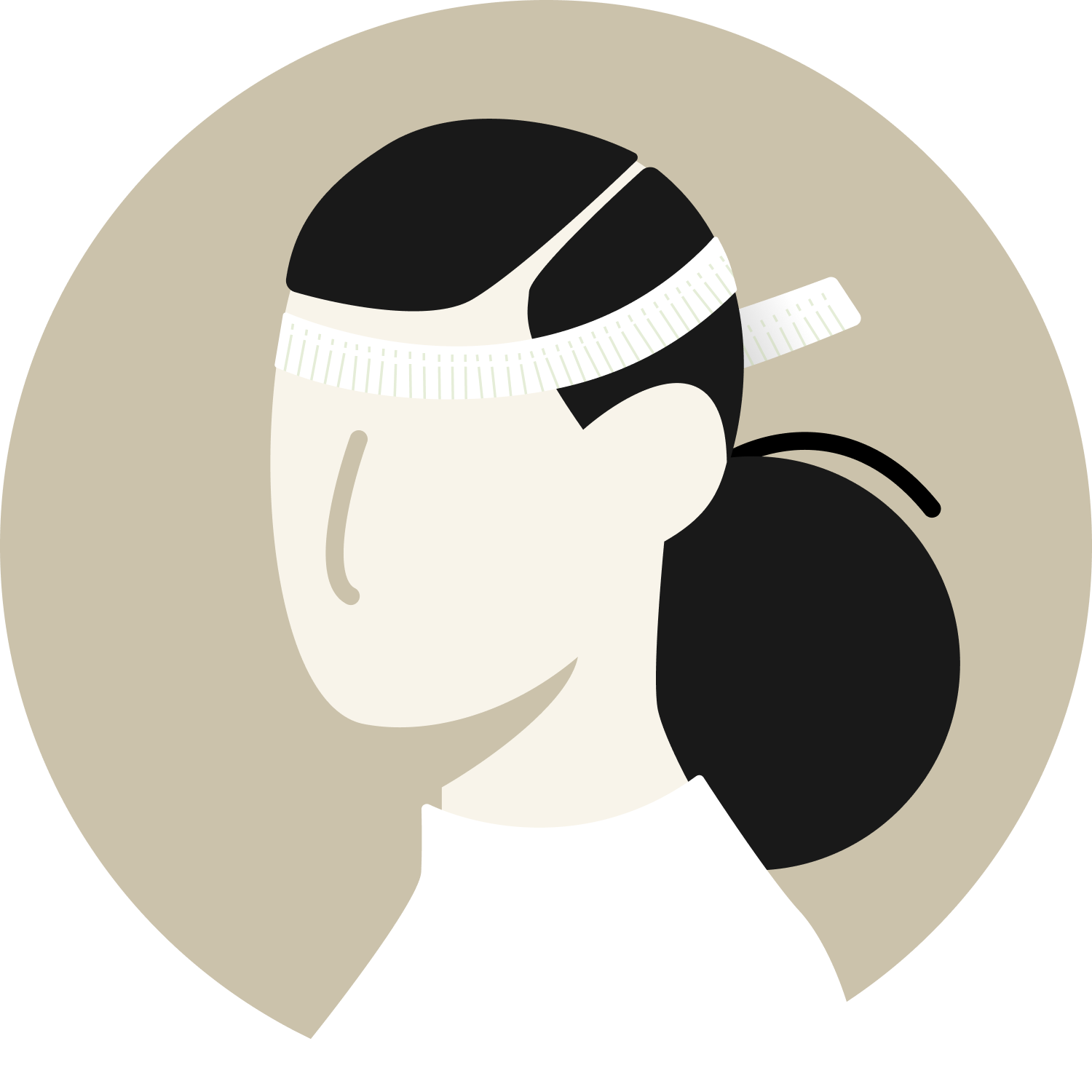 Measure your head circumference with a measuring tape. It should be placed loosely around your head above your eyebrows and in an almost horizontal line around the back of your head.